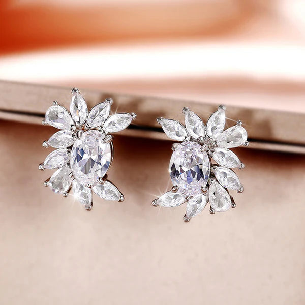 White Flare – Silver Plated American Diamond Studded Anti Tarnish White Crushed Ice Cut Stud Earrings